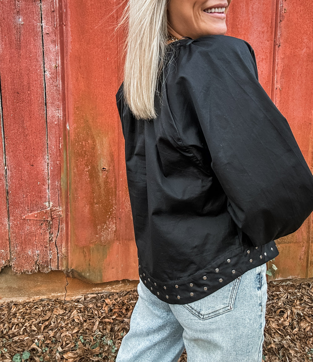 Rounded Hem Corded Sweatshirt - Sky Blue DOORBUSTER