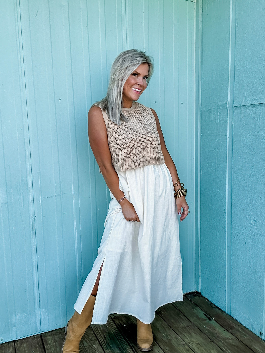 Textured Grace Sweater Layered Dress