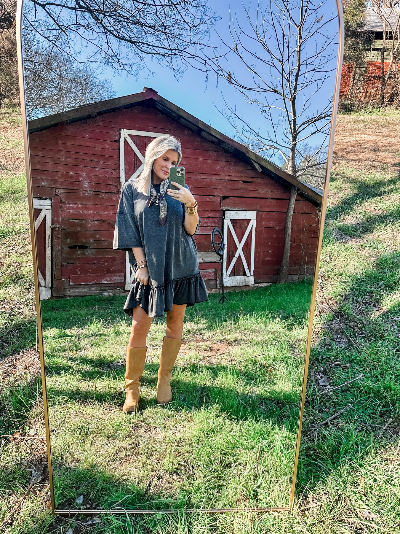 Your favorite tee dress..just upgraded. This mineral wash charcoal dress has that soft, lived in feel with an easy t-shirt fit you already love. The ruffled hem adds the perfect little twist to make it feel styled, not basic. Relaxed, comfy, and effortless. Throw it on with sneakers or boots and layers for a more put together vibe. Easy, elevated and ready for whatever. Model has plenty of room in her true size Small. Feel free to size down for a more true to size fit.