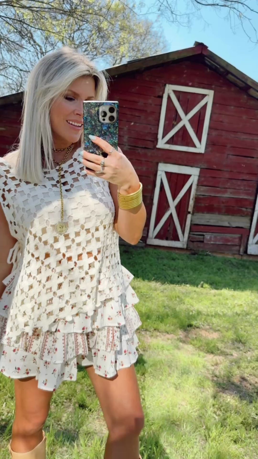 Ivory skort with a dainty floral print and an easy elastic waist. Designed to look like a skirt with the comfort of built in shorts. Lightweight, flowy and perfect for an effortless Summer look. Model is wearing her true size Small.