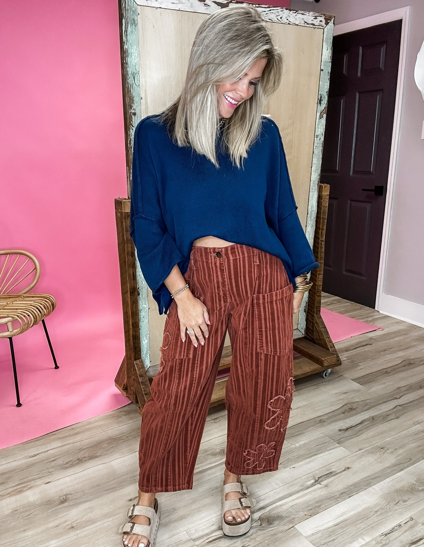 A true essential, this navy sweater features a flattering, flowy body and the perfect mid-weight feel. Effortless to wear and easy to style, it’s the kind of classic piece that belongs in every wardrobe! Model is wearing her true size S/M with a true sweater fit!