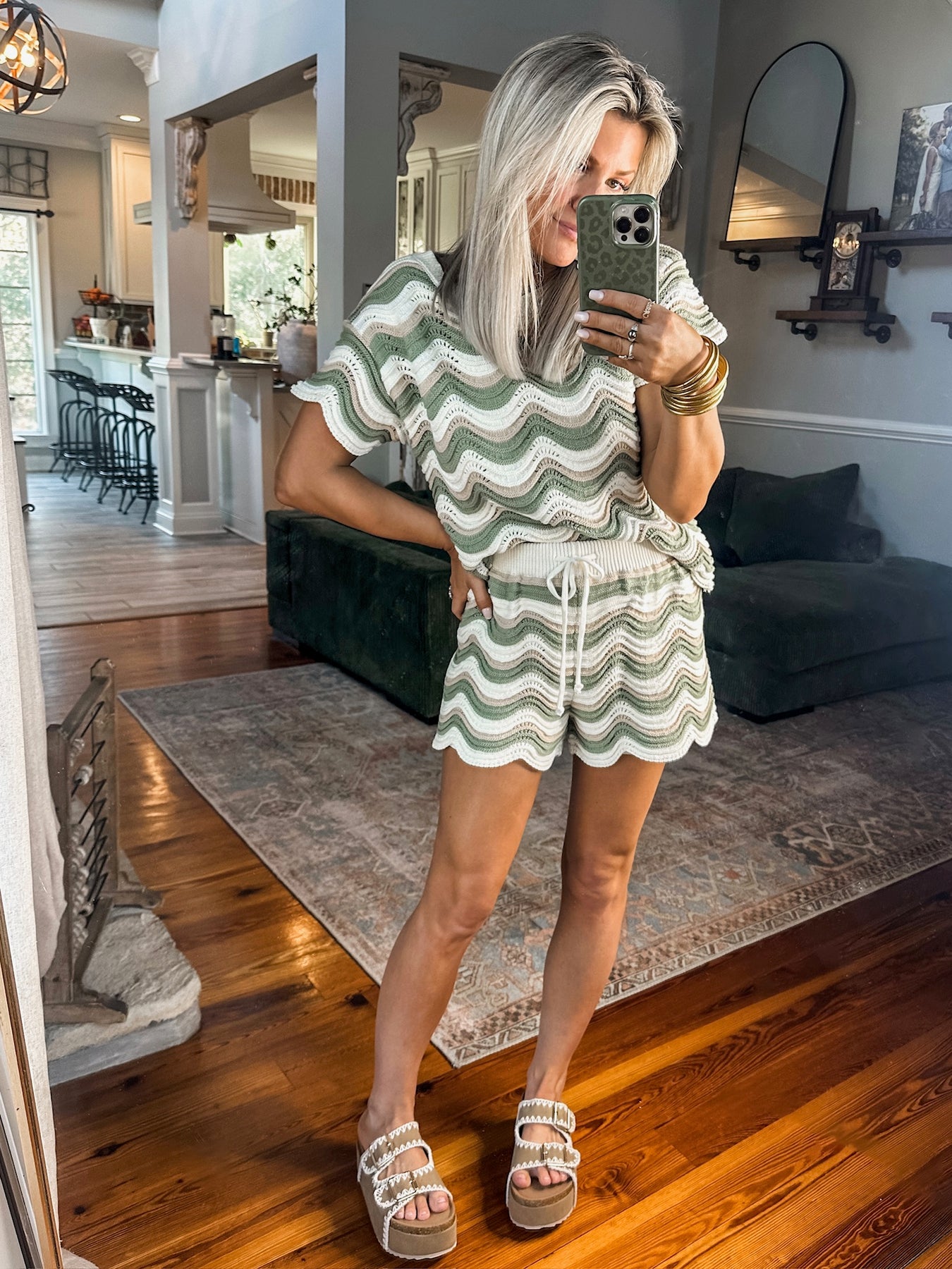 Comfy meets cute in this crocheted set, designed in a dreamy green and neutral color combo. Scalloped details add the sweetest touch, while the relaxed fit keeps it effortless. Style it with boots for the perfect Fall vibe!