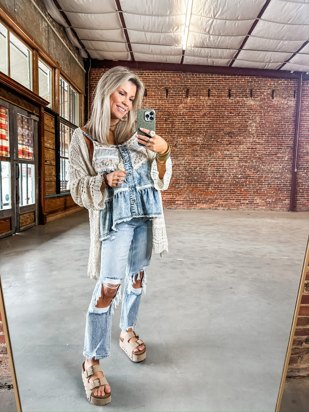 Perfectly Worn Mineral Wash Mock Neck - Blue