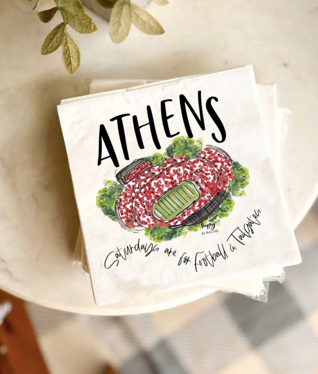 One of a kind 3 ply napkins to meet all your tailgate needs! Measures 6.5"x6.5" folded. So cute you may not want to use them! Sold in packs of 20.
