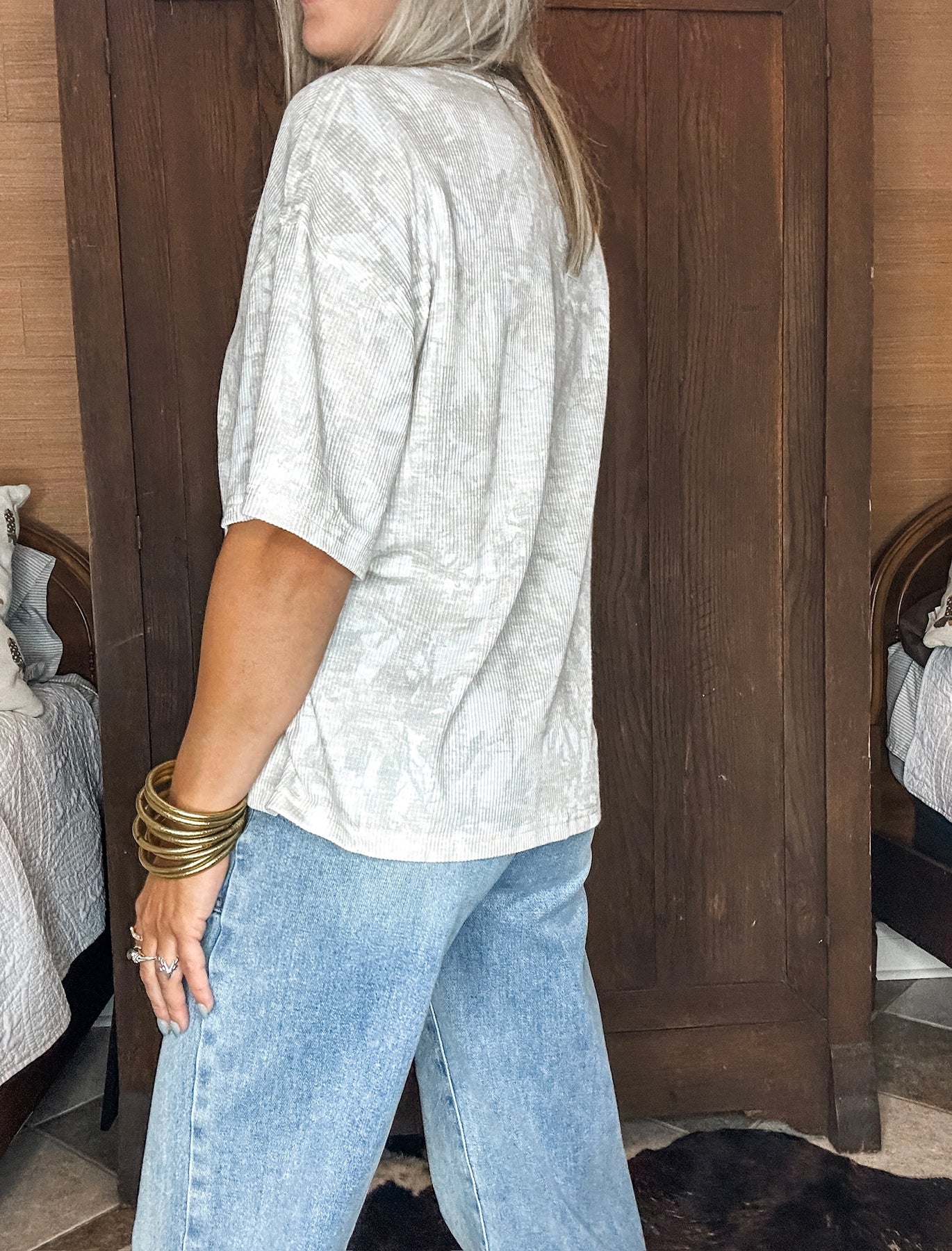 A camo classic you’ll wear year round! This muted ribbed camo top features a relaxed, easy fit that’s perfect on its own or layered when the weather cools down. Effortless, comfy, and always in style! Model is wearing her true size Small with a relaxed fit!