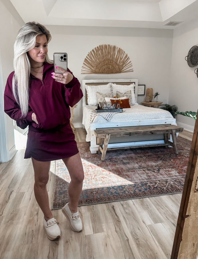 When I saw this and felt it in person, I HAD to have it! Trust me-the quality is amazing! It’s the perfect transitional piece. Fleece lined and so many details. You truly need the whole set! The pullover is a quarter zip with zipper pockets and a comfortable fit. Model is wearing the size small!