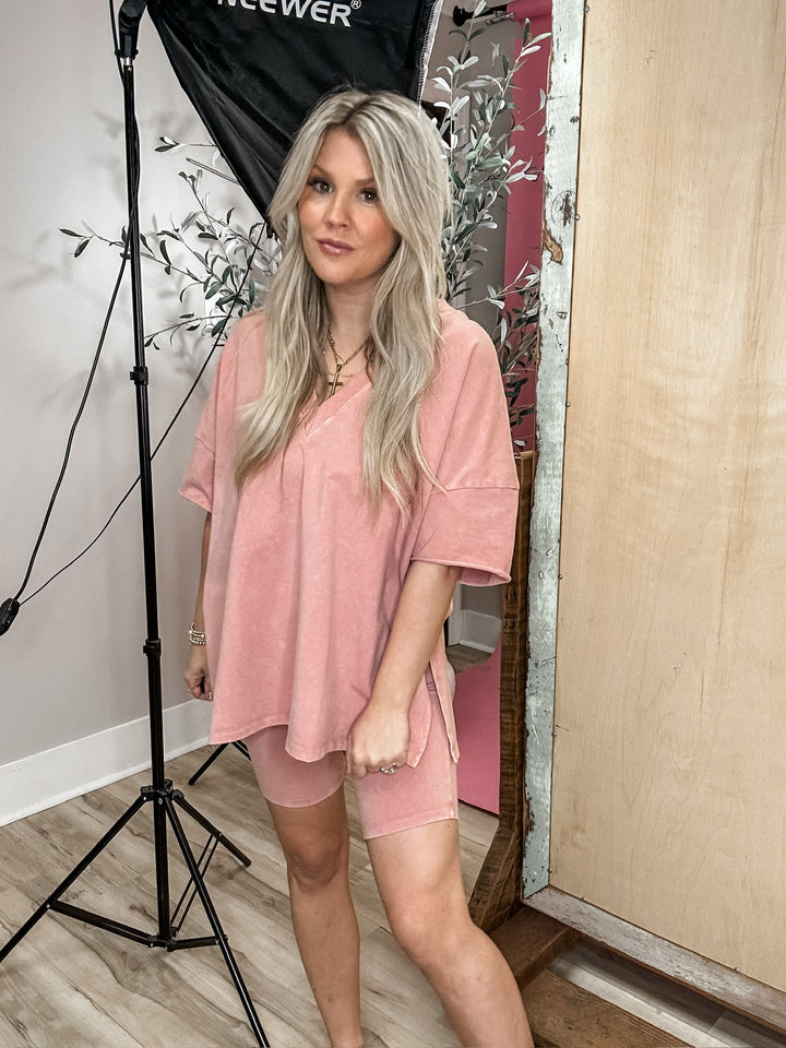 My Best Bet Mineral Washed T-Shirt Set - Blush