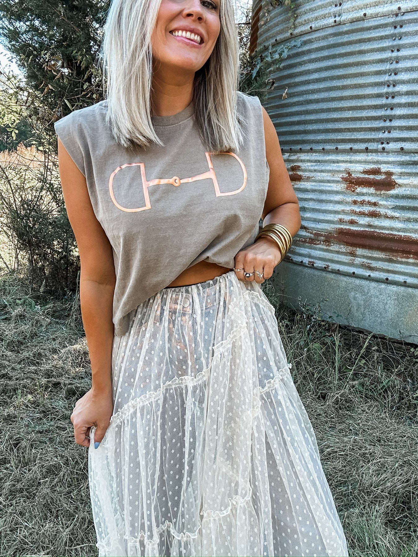 Bring effortless boho charm to any outfit! The elastic waist ensures a comfortable fit, while the airy, flowy layers create soft movement and texture. Perfect for layering while it adds a whimsical, free spirited touch to your everyday look! Model is 5'2" and is wearing her true size Small.